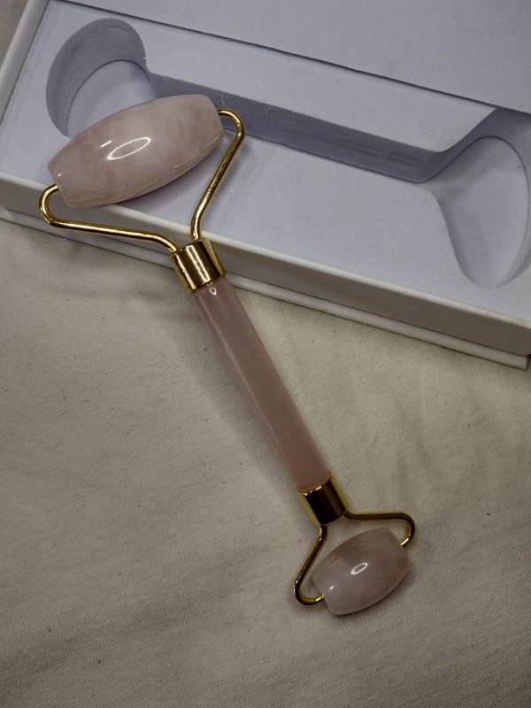 El rodillo de cuarzo rosa es una herramienta de belleza para masajes faciales que promueve el drenaje linfático, la circulación sanguínea y la producción de colágeno, ayudando a desinflamar, reafirmar y reducir arrugas. Ofrece un efecto refrescante natural que calma la piel, ideal para usar con sueros o aceites en movimientos